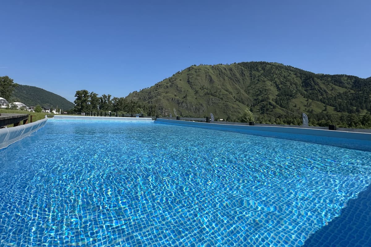 Насладитесь единением с природой у нашего открытого бассейна с панорамным видом на горы. Здесь вас ждёт кристально чистая вода, просторная зона для загара с шезлонгами и атмосфера полного релакса. Погрейтесь под тёплым алтайским солнцем, вдыхая свежий горный воздух, а после — освежитесь в прохладной воде. Это и есть настоящий секрет лучшего отдыха!